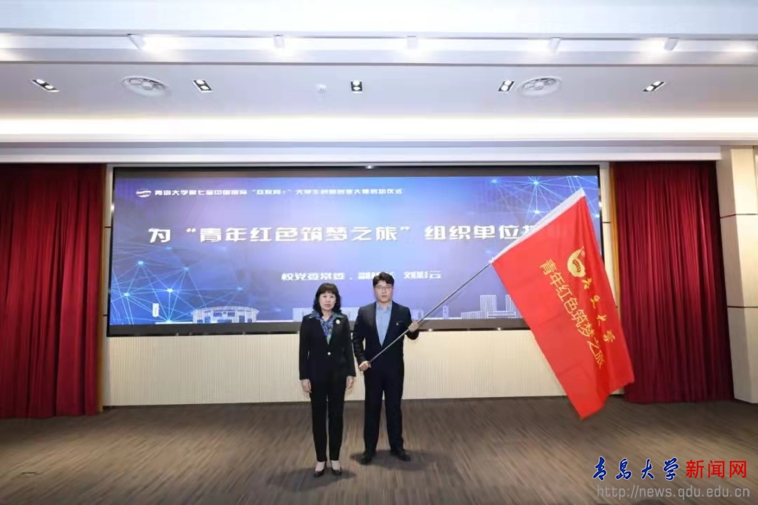 仪式上,刘彩云为本届“青年红色筑梦之旅”组织单位授旗,标志着伟德官网2021年“青年红色筑梦之旅”正式启动。
