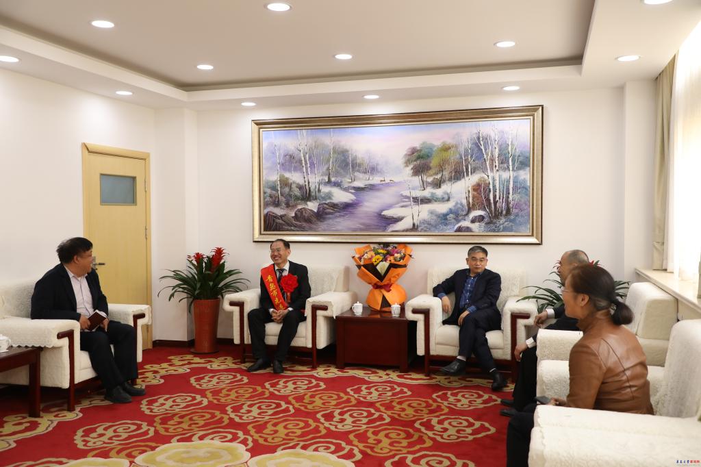 胡金焱首先代表校党委向房宽峻同志表示热烈祝贺,并感谢他为学校赢得的荣誉。