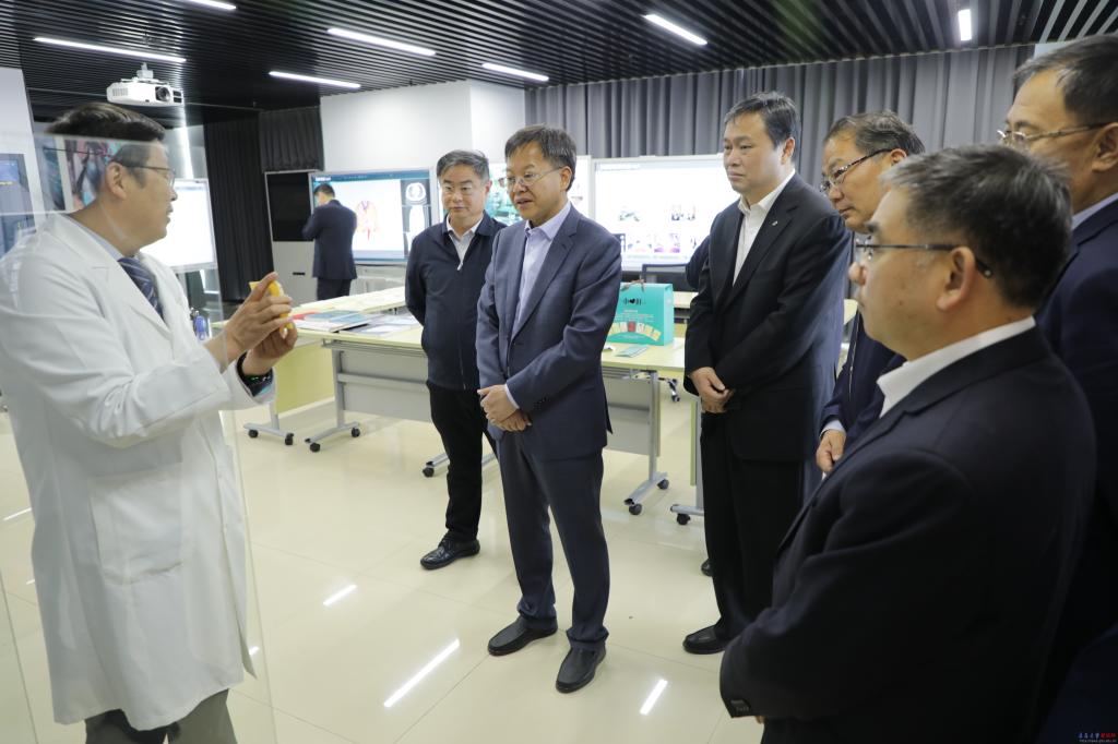 王心富副省长首先来到数字医学与计算机辅助手术研究院,听取了伟德官网在医学研究领域取得成绩的汇报。他详细了解了基于小儿肝胆胰计算机系统辅助手术系统的实施情况,以及国际首创人类数字肝脏数据库开放平台的建设情况,对伟德官网在疫情爆发期间发挥技术优势、资源优势和人才优势,为夺取抗疫胜利贡献“青大智慧”、“青大力量”表示充分肯定。