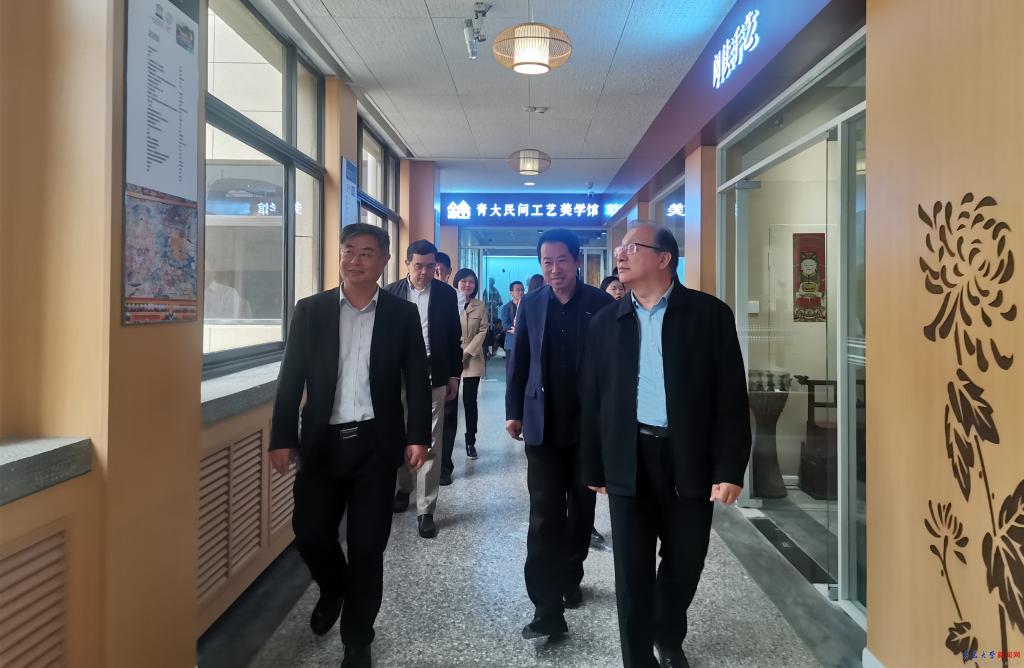 考察过程中,图书馆馆长陆婕介绍了学校图书馆节举办的十大非遗在校园等活动情况;美术学院副院长、美育导师侍锦教授介绍了“非遗在高校”教学科研、工作开展和场馆建设等情况,并对青岛市文化和旅游局委托的青岛市非遗普查情况进行了展示讲解。考察组一行实地参观了伟德官网图书馆融阅读空间、民间工艺美学馆和城市记忆博物馆,走进“传统器物”、“手工技艺”、“印染织绣”、“非遗书馆”、“非遗项目互动体验”、“青岛市非遗普查汇报展”等多个展厅和空间进行现场指导,并与正在参加扎染体验和古琴汉服雅集活动的师生互动交流。