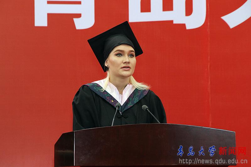 留学生代表、来自俄罗斯的国际教育学院学生文静雅在发言中表达了对母校的热爱和不舍,表示将尽己所能为传播中华文化多做贡献。