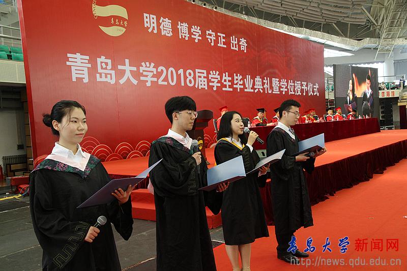 毕业生代表、医学部2010级临床医学专业(八年制)学生周欣蓓在发言中表示,将怀揣神圣使命,铭记嘱托,用梦想、激情与汗水远赴八方,尽展青大才俊风采。