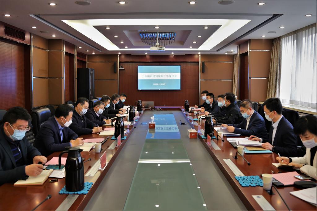 新闻网讯 12月13日上午,上合组织经贸学院工作座谈会在办公楼第五会议室召开。上合示范区党工委副书记、管委会常务副主任李刚,上合组织经贸学院理事长、校党委书记胡金焱出席会议并讲话。上合示范区党工委委员、管委会副主任郝国新,校党委副书记杜方波,校党委常委、副校长李军、肖江南参加会议。