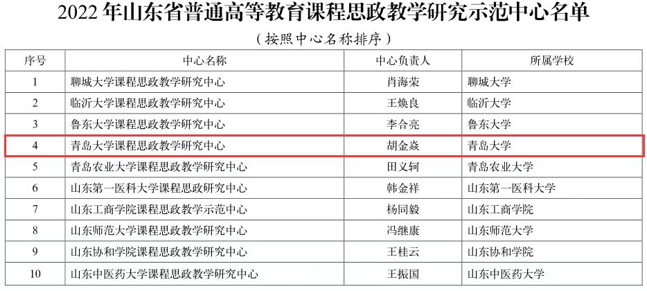 据悉,2022年山东省普通本科教育课程思政示范课程160门,普通高等教育课程思政教学研究示范中心10个。学校将继续加强对课程思政示范项目的管理,以点带面抓示范,分类提升立标杆,及时总结树典型,展示宣传促辐射,形成良好的课程思政建设氛围。