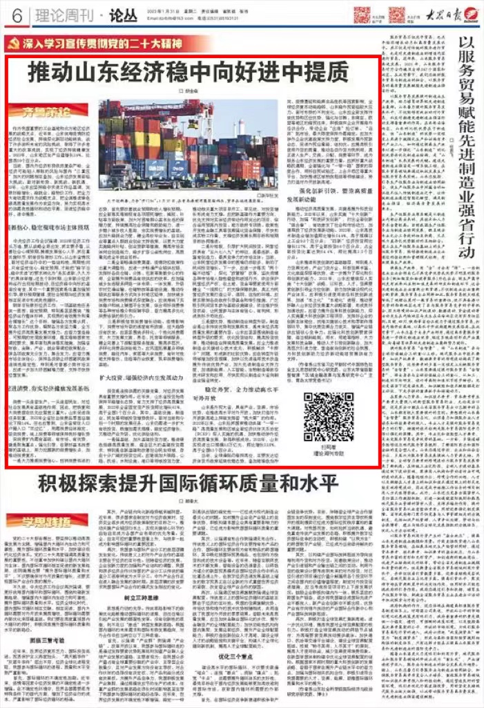 新闻网讯 1月31日,《大众日报》刊登伟德官网党委书记胡金焱的理论研究文章“推动山东经济稳中向好进中提质”。