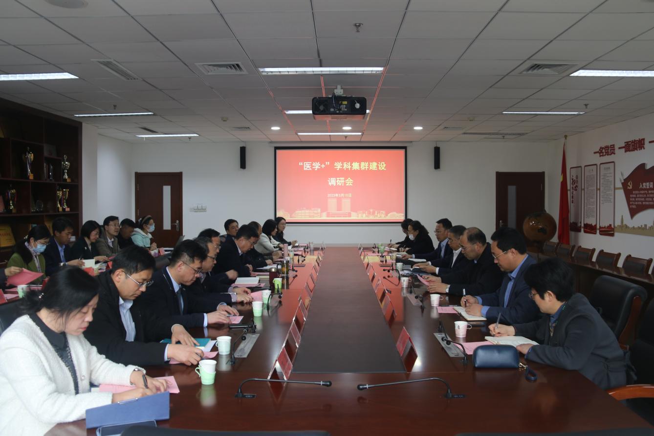 新闻网讯 3月14日下午,校党委书记胡金焱到医学部调研指导“医学+”学科群建设和研究院建设情况,校党委常委、副校长孔伟金陪同调研,医学部党政领导班子成员和各学院党政负责人参加调研座谈会。座谈会由医学部党委书记王新生主持。