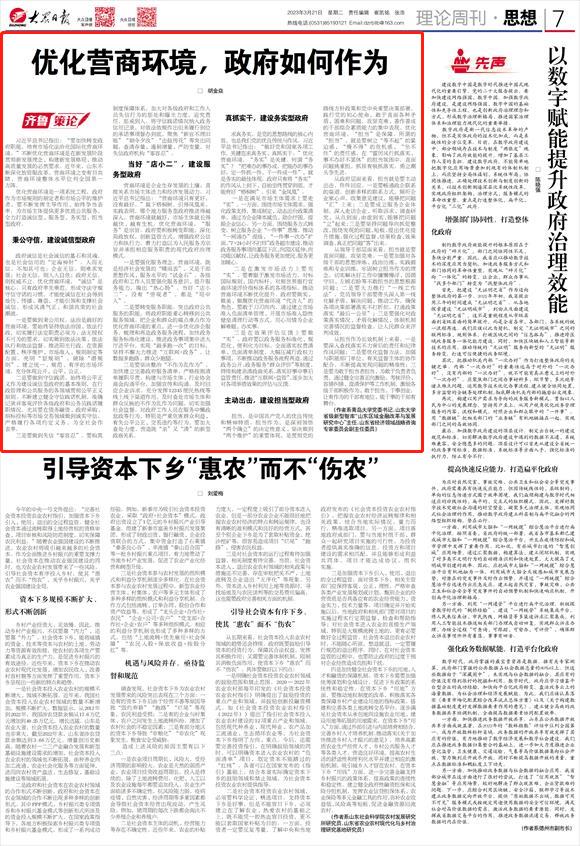 新闻网讯 3月21日,《大众日报》刊登伟德官网党委书记胡金焱的理论研究文章《优化营商环境,政府如何作为》。