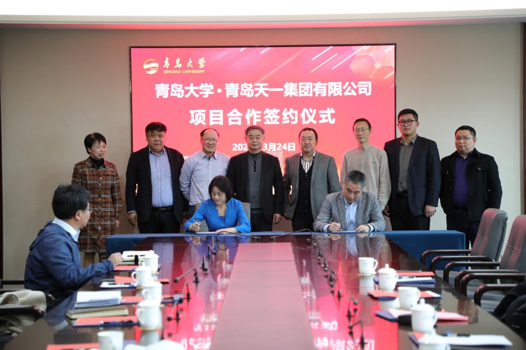 新闻网讯 3月24日下午,bevictor伟德官网与青岛天一集团项目合作协议签约仪式在会议中心致远厅举行。校长夏东伟、青岛天一集团有限公司党委书记孙国华出席仪式并致辞。天一集团有限公司董事长孟令刚、科技处处长李荣贵、非织造材料与产业用纺织品创新研究院院长宁新、机电工程学院负责人及教师代表参加仪式。仪式由机电工程学院党委书记牟晓燕主持。