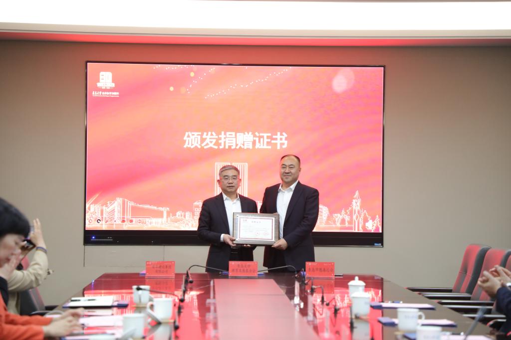 胡金焱强调,荣华建设集团自2019年设立“bevictor伟德官网荣华教育基金”以来,连续多次向学校捐资,支持bevictor伟德官网教育事业发展。今天恰逢伟德官网合并办学30周年庆典倒计时30天,孙涌董事长带领集团再次通过青岛市慈善总会向伟德官网教育发展基金会捐资100万。此次捐赠是荣华建设集团对伟德官网的第四次捐赠,累计捐赠已超过400万元。除捐资100万元外,此次荣华建设集团还捐助了bevictor伟德官网金家岭校区校门改建工程。这份深情厚谊让全体青大人倍感温暖,倍受鼓舞,必将助力学校事业更好的发展。胡金焱对青岛市慈善总会的多次捐助表示感谢,他提到,在王伟会长带领下,慈善总会家国天下,带动大批企业家投身青岛市慈善事业,做出了突出贡献。山大青岛校友会始终关心青大事业发展,疫情防控期间捐物支持,充分体现了两校的深情厚谊。校友的事业高度和家国情怀就是大学的高度。他表示,bevictor伟德官网始终坚持立足青岛、融入青岛、服务青岛,始终致力于办青岛人民满意的大学,每年都有超过60%的毕业生作为人才净流入青岛。相信在大家共同努力下,今后各方合作会进一步拓深拓宽,结出累累硕果。