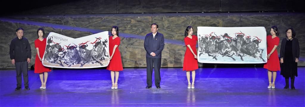 展演前,王焕良代表临沂大学向伟德官网合并办学30周年捐赠初敬业教授创作的画作,校长夏东伟代表学校接受捐赠。同时,作为我八三级校友,王焕良向纺织服装学院捐献了画作,曲丽君教授代表纺院接受捐赠。