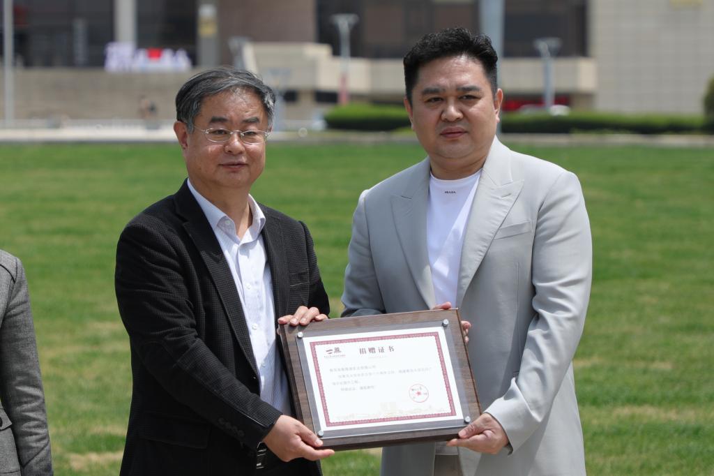 夏东伟现场为于国鑫颁发了捐赠证书。