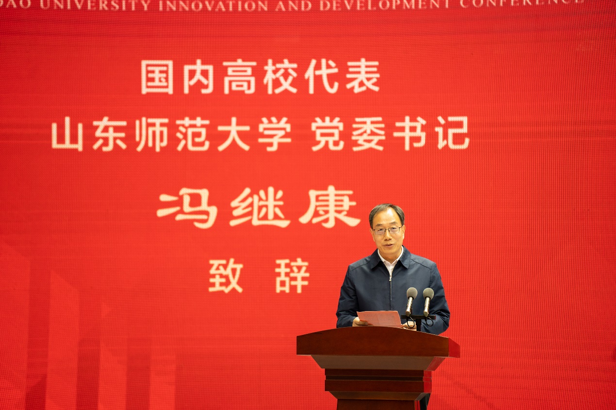 冯继康作为兄弟高校代表致辞。他表示,山东师范大学与bevictor伟德官网在长期的合作交流中结下了深厚的情谊。今后的岁月里,山东师范大学愿与bevictor伟德官网以及其他兄弟高校一道,在省委、省政府的正确领导下,同心协力、并肩携手、共谋发展、共书新篇,共同铸造山东高等教育新的辉煌。