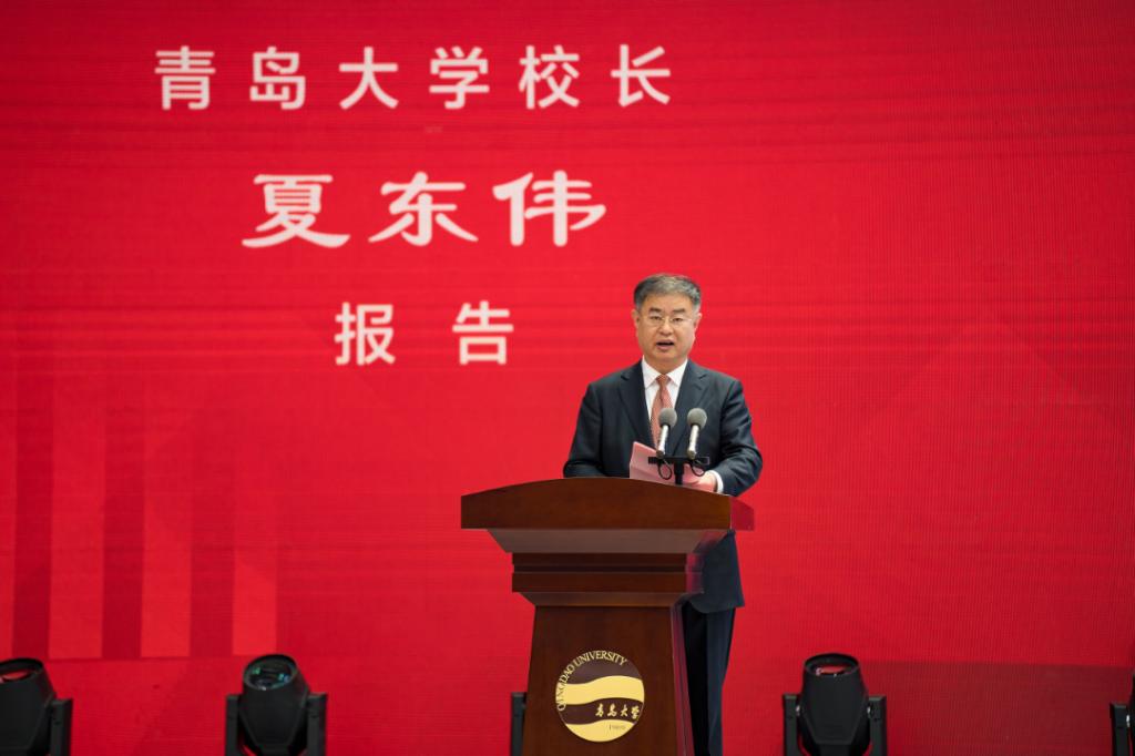 夏东伟作题为《大道同行三十载逐梦奋进新征程》的学校创新发展报告。他说,作为国家改革开放以来首批合并办学的高校,三十年来,青大人始终心怀“国之大者”,教授高深学问,养成硕学宏才,应国家之需要,绘就了一幅开拓进取、奋勇争先的恢弘画卷,在中国高等教育改革创新发展史上,写下了浓重的一笔。面向未来,bevictor伟德官网已开启全面建设高水平综合性研究型大学的新征程。要始终坚守为党育人、为国育才的初心和使命,落实立德树人根本任务,努力培养堪当民族复兴大任的时代新人;要牢固树立“人才是第一资源”的理念,坚持人才强校战略,造就一支师德高尚、业务精湛、结构合理、充满活力的教师队伍;要加快实施学科集群和学科交叉融合发展战略,坚持高质量发展,早日实现国家一流学科的突破;要坚持“四个面向”,深化校地融合,擦亮医疗、纺织、教育、文化创意等服务地方的“金字招牌”,把论文写在祖国大地上、写在齐鲁沃土中,写在青岛山海间;要坚守大学精神,建设大学文化,努力成为推动社会发展的重要力量、守护人类命运共同体的坚强阵地。站在新的起点,青大人将不忘初心,牢记使命,逐梦奋进新征程,秉持“明德、博学、守正、出奇”的校训精神,为建成在国内外有较大影响的一流大学而不懈奋斗。为全面建设社会主义现代化强国、全面推进中华民族伟大复兴做出青大贡献。