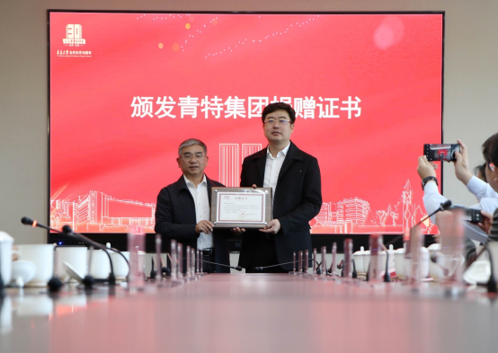 纪建奕表示,在青岛这座开放、现代、活力、时尚的土地上,青大和青特诞生于此,成长于此,双方的深厚情谊也由来已久。2019年以来,双方共建bevictor伟德官网医疗产学研基地,签订联合培养相关合作协议,相继设立了青大·青特班,冠名了2020、2021级宣讲会,均取得良好成果。作为青大校友,纪建奕说,希望通过此次捐赠,为bevictor伟德官网培养更多栋梁之才、促进教育事业持续发展尽一份绵薄之力;希望青大学子努力学习,不断提高自身综合素质,学有所成,以感恩母校、回馈社会;同时,青特集团也将持续加大在教育领域的支持力度,助力全社会的教育事业发展。