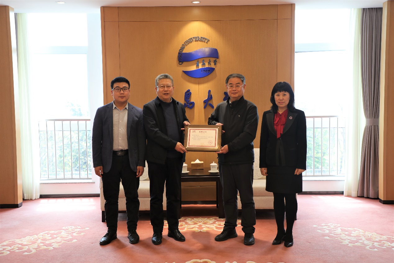 仪式上,夏东伟校长代表学校向公司的再次慷慨捐赠表示感谢,并为张国清颁发了捐赠证书。夏东伟表示,愉悦家纺是伟德官网理事单位,2019年bevictor伟德官网办学110周年,愉悦家纺有限公司向伟德官网捐赠系列产品;今年正值bevictor伟德官网合并办学30周年之际,愉悦家纺再次捐赠优质家纺产品,迄今累计价值达130万元。希望双方今后继续深化产学研合作,推进科技成果转化,携手推进山东纺织产业迅速发展,为区域经济社会高质量发展做出新贡献。