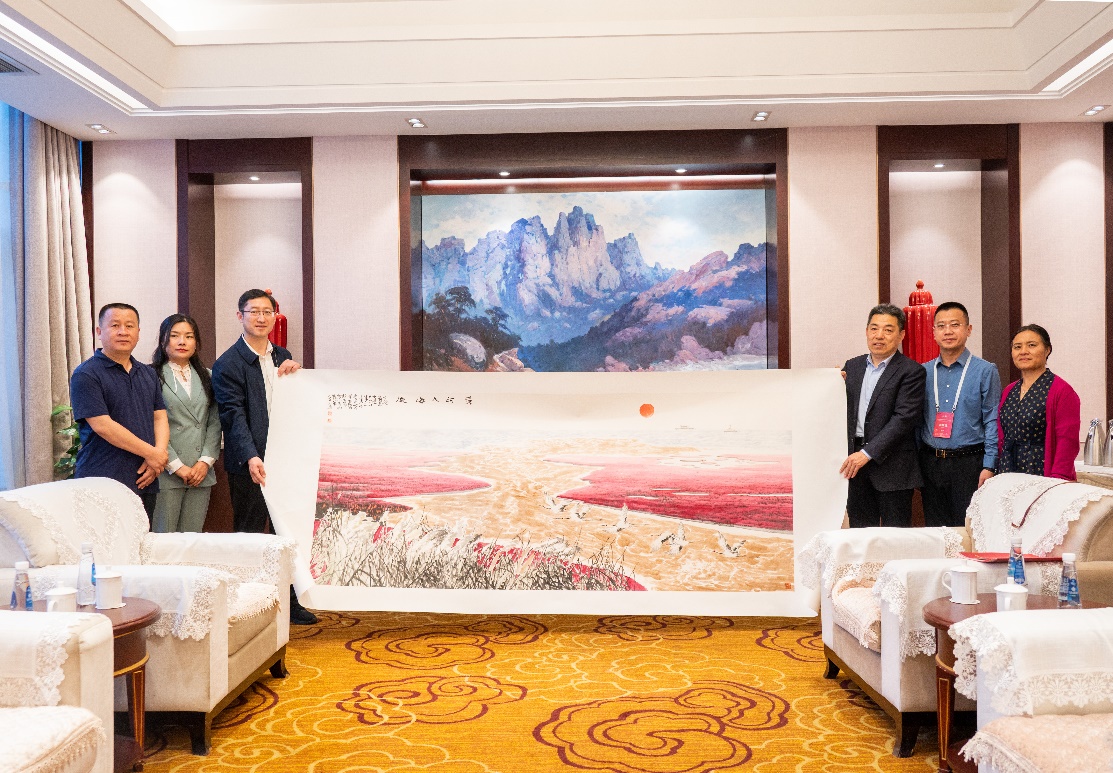 仪式前,胡金焱会见了东营校友会一行。杜方波代表学校感谢东营校友会一直以来对母校的关心支持,对本次捐赠表示衷心感谢。杜方波说,在学校合并办学30周年之际,东营校友会积极策划捐赠母校书画作品《黄河入海流》,彰显了东营校友会及其校友们对母校的浓情厚谊。近年来,东营校友会积极为校友服务的同时,助力母校各项事业发展,在人才培养、校企合作、校际合作、共建产业孵化基地等方面取得丰硕成果。杜方波表示,母校始终挂念校友的成长和进步,希望可以通过更多这样的活动,凝心聚力,献计献策,更好地畅通学校和校友的联系渠道,凝聚各方优势资源,服务广大校友、服务社会、促进母校和校友事业共同发展,相互成就,助推教育事业发展。