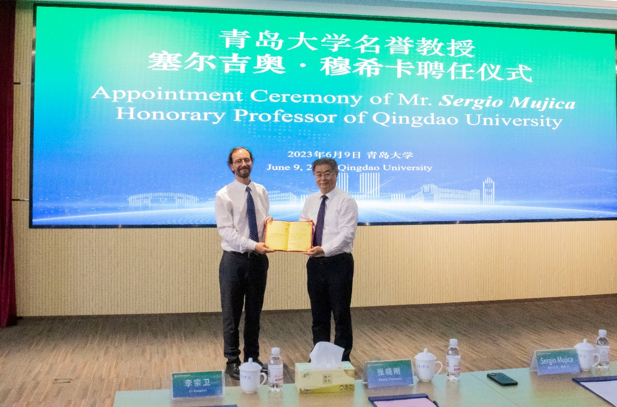 会上举行了bevictor伟德官网名誉教授授予仪式,夏东伟为塞尔吉奥·穆希卡颁发bevictor伟德官网名誉教授聘任证书。