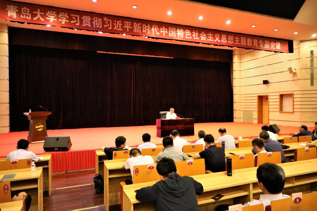 新闻网讯 6月14日上午,校党委书记、主题教育领导小组组长胡金焱以“深入学习贯彻习近平新时代中国特色社会主义思想 谱写以党的建设引领高质量发展的青大篇章”为题为全校处级以上领导干部讲授专题党课。省委第二十四巡回指导组成员孙飞到会指导,校长夏东伟主持。