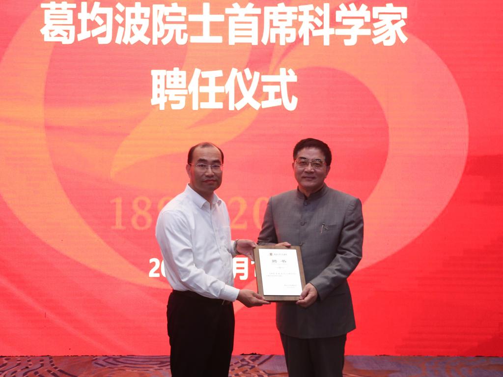 青大附院聘任葛均波院士为医院首席科学家,孔伟金副校长向葛均波院士颁发聘书。