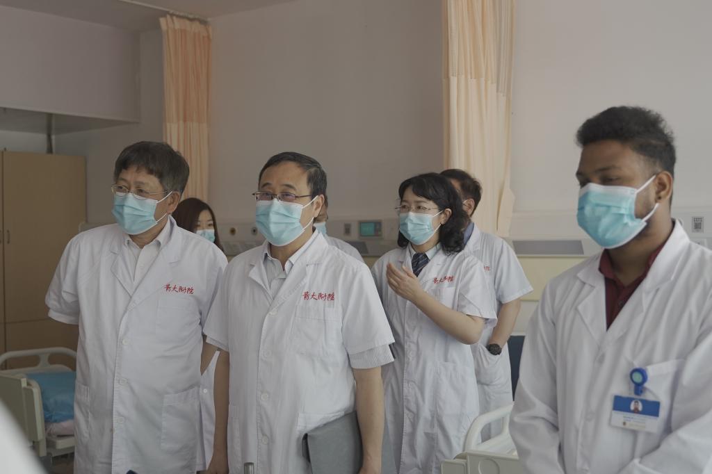 现场审查期间,专家组访谈了学校分管校领导、留学生管理人员代表、教师代表和留学生代表,深入了解留学生教学管理情况;走访了校史馆、医学部、心理中心、附属医院,查看了留学生宿舍等生活环境;查阅了留学生招生、教学、管理等相关档案;现场观摩了《中国概况》课堂教学和临床医学专业留学生的附属医院实习。