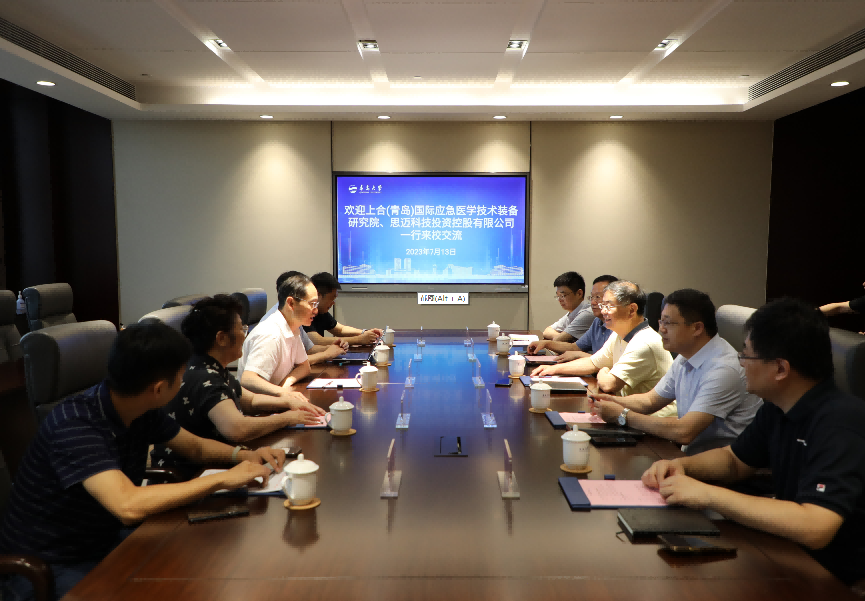 新闻网讯 7月13日上午,上合(青岛)国际应急医学技术装备研究院院长侯世科、常务副院长樊毫军、办公室主任江黄森,思迈科技投资控股有限公司董事长管宝莲、总经理李振来访伟德官网。校长夏东伟在会议中心会见并座谈。