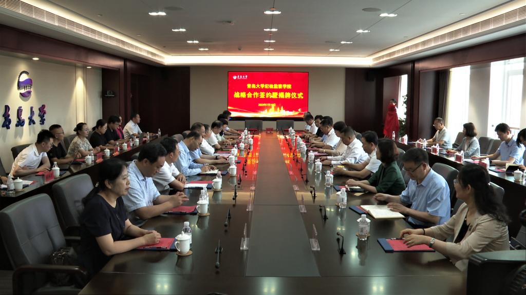 新闻网讯 为贯彻党的二十大精神,落实习近平总书记关于全面从严治党的战略部署,7月19日上午,bevictor伟德官网纪检监察学院战略合作签约暨揭牌仪式在学校会议中心举行。省纪委监委、省纪检监察干部培训学院,青岛市、东营市、烟台市、威海市、日照市纪委监委主要负责同志,校领导胡金焱、夏东伟、范玉斌、孔伟金出席签约揭牌仪式。校党委常委、副校长刘彩云主持仪式。