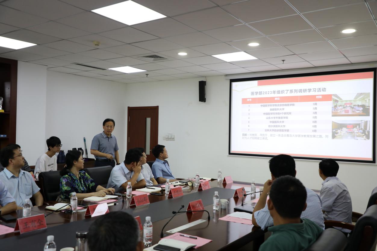 调研会上,医学部常务副部长宋扬介绍了医学部主题教育调研情况,领导班子先后考察国内多家医学院校,在对比交流中找差距、寻良方。他分析了医学部当前发展中存在的六方面突出问题,并提出了今后的工作思路和重点举措,包括加大人才引进培育力度、提升人才培养能力、推动交叉医学融通创新、强化“医学+”学科群建设、推动高水平附院建设、加快西海岸医学医疗中心建设、服务社会增强造血能力等。