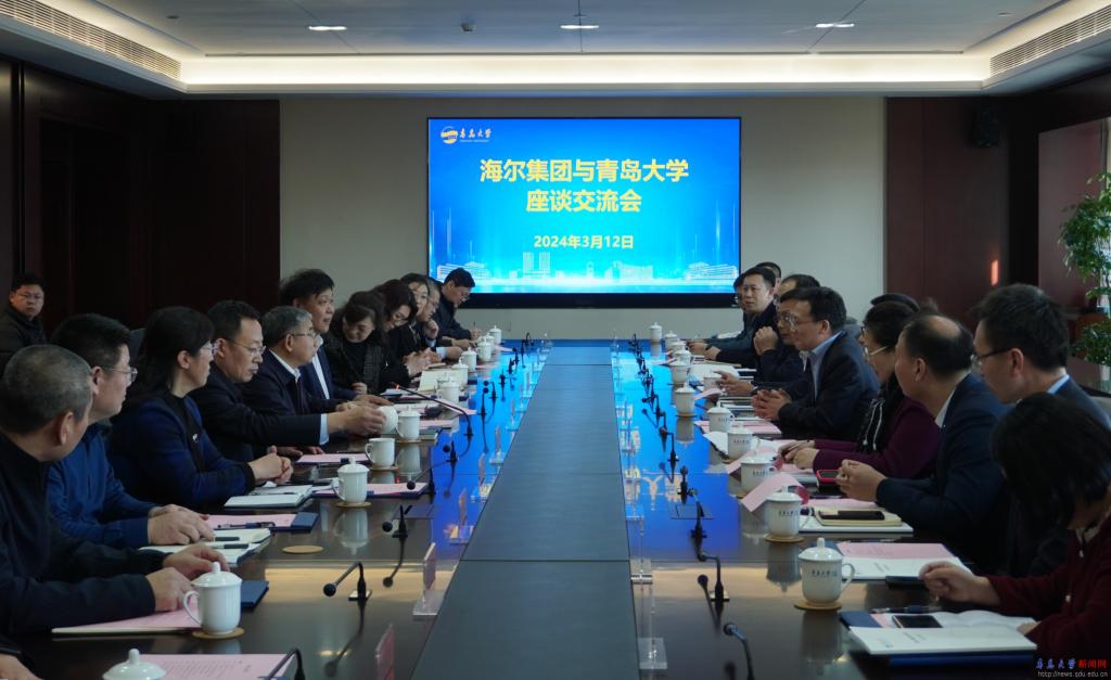 李荣贵聚焦学校科研创新及双方现有科技合作情况做了介绍,海尔集团CTO、科学与技术委员会执行主任王晔围绕海尔集团概况及双方合作机会点进行了介绍。座谈双方进一步就人才培养、科研平台建设、科技交流与合作等方面展开了深入交流。