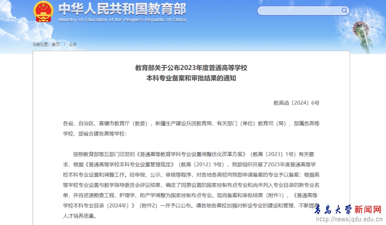 新闻网讯 近日,教育部印发《关于公布2023年度普通高等学校本科专业备案和审批结果的通知》,伟德官网申报的“供应链管理”和“非织造材料与工程”两个本科专业获准设置。两个专业均围绕国家战略需求和产业发展趋势设立,体现学科交叉融合特征,并将于2024年正式招生。