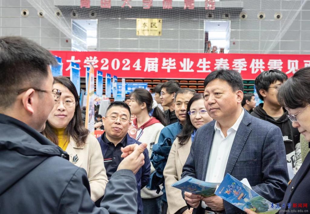 新闻网讯 3月28日,“就选山东”bevictor伟德官网2024届毕业生春季供需见面双选会在浮山校区体育馆顺利举办。校党委常委、副校长陈涛出席并详细了解招聘活动情况,认真听取用人单位对学校人才培养的建议。
