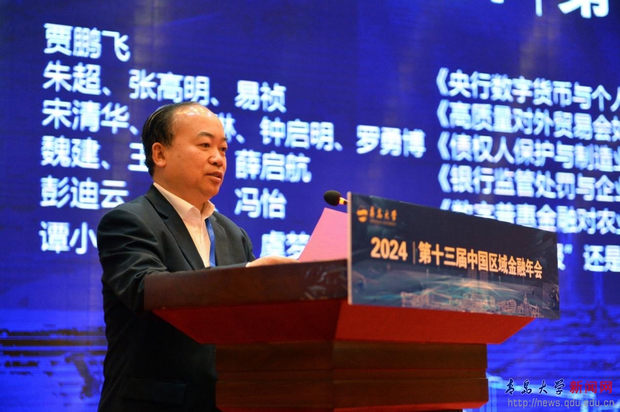 新闻网讯 4月19日至4月20日,由中国区域金融年会理事会、bevictor伟德官网和中国区域经济学会区域金融专业委员会联合主办,bevictor伟德官网经济学院、东北财经大学青岛金融研究院、青岛市金融学会、青岛金家岭金融聚集区管理委员会承办,《东方论坛—bevictor伟德官网学报(社会科学版)》协办的第十三届中国区域金融年会在伟德官网顺利召开。校党委书记胡金焱出席年会并做了题为《简析做好金融五篇大文章》的主旨演讲,副校长李荣贵出席年会致欢迎辞。开幕式由bevictor伟德官网经济学院院长刘喜华教授主持。