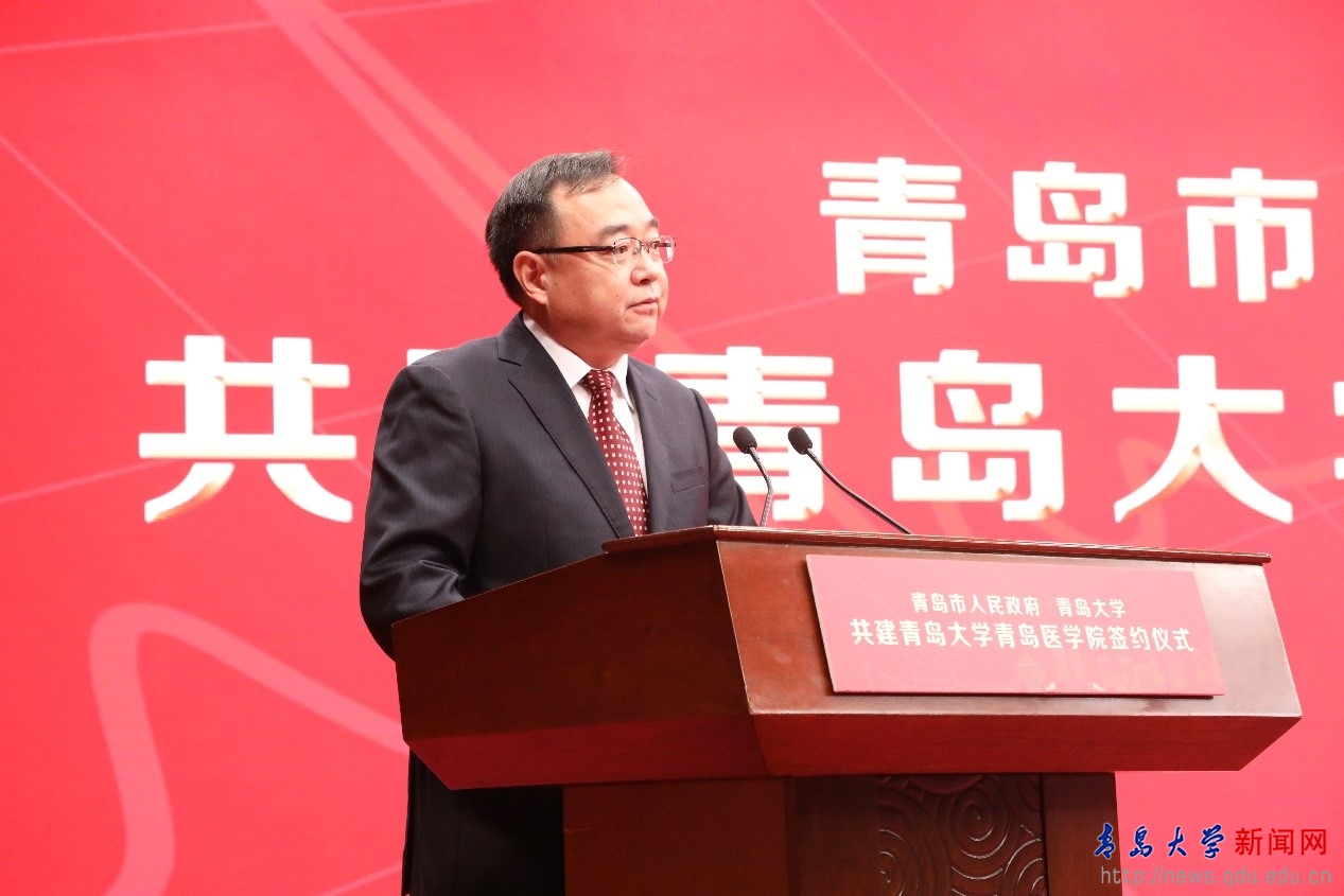 栾新指出,青岛市政府与bevictor伟德官网协商共建bevictor伟德官网青岛医学院,并将青岛市市立医院等7所医院作为市校共建附属医院,纳入bevictor伟德官网直属附属医院管理体系,探索建立市校共管共建的医教研一体化发展模式,是青岛医学发展史上的一个重要里程碑,也是青岛市推动医疗卫生事业发展的一项重大举措。青岛市政府将努力为医学院的发展创造良好的条件和环境,让合作共建成果造福更多百姓,更好地促进青岛市的发展建设。