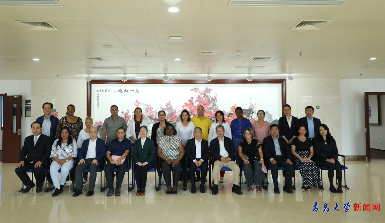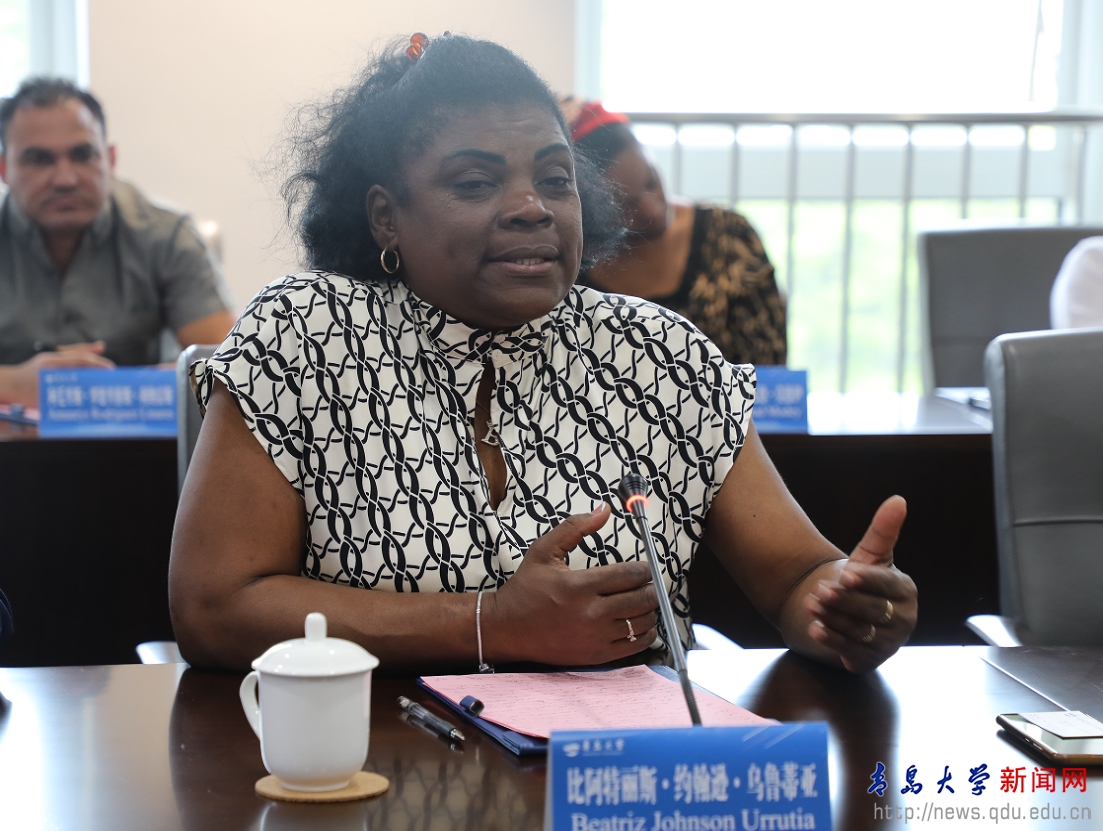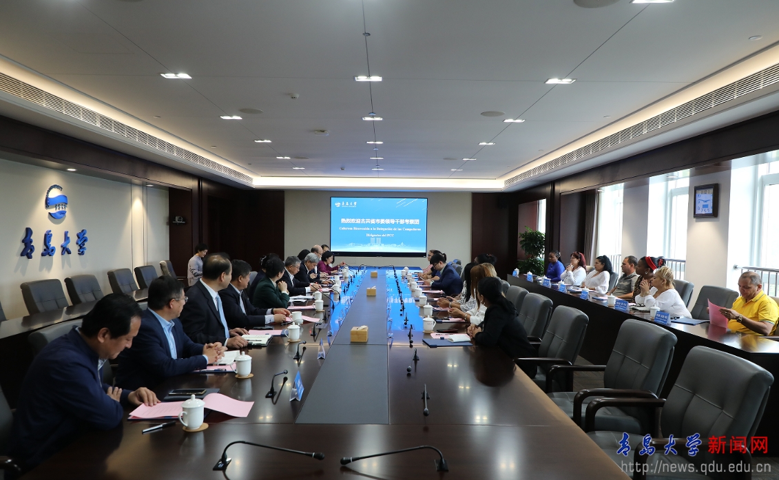 新闻网讯 5月15日下午,古巴共产党中央委员、圣地亚哥省委第一书记比阿特丽兹·约翰逊·乌鲁蒂亚率领 “古共省市委领导干部考察团”一行15人来伟德官网访问交流,校党委书记胡金焱在会议中心302会议室会见并与代表团进行了座谈交流。中联部五局、青岛市委外办有关负责人陪同考察团来校访问。校党委常委、副校长何燕主持座谈会,校党委常委、宣传部部长吴世珍出席座谈会。