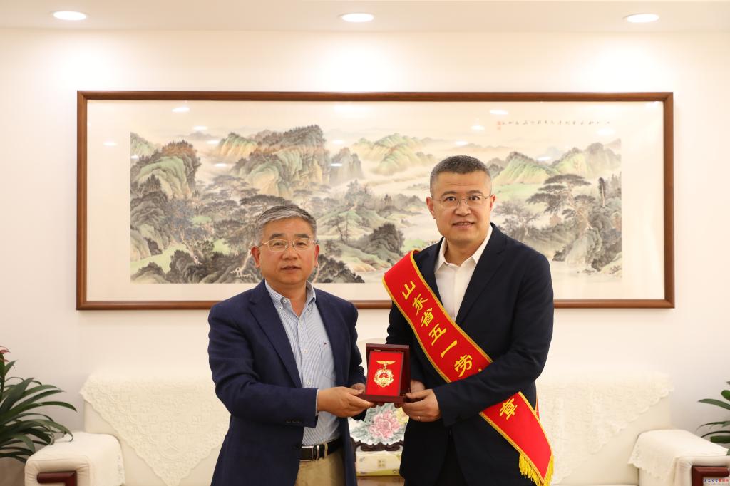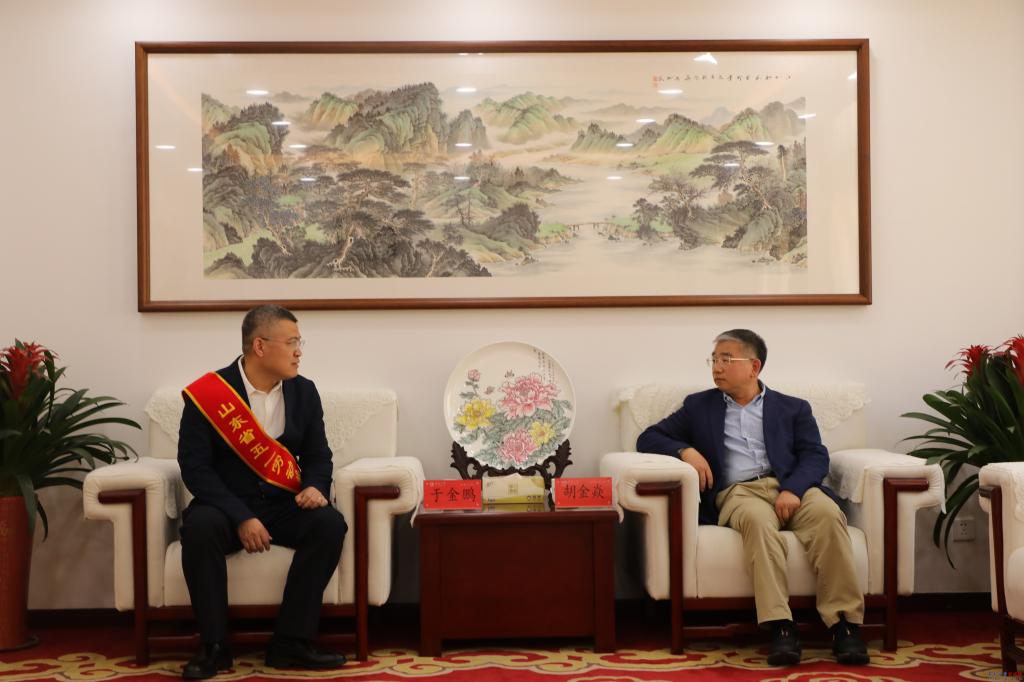 校党委书记胡金焱会见“山东省五一劳动奖章”获得者于金鹏教授