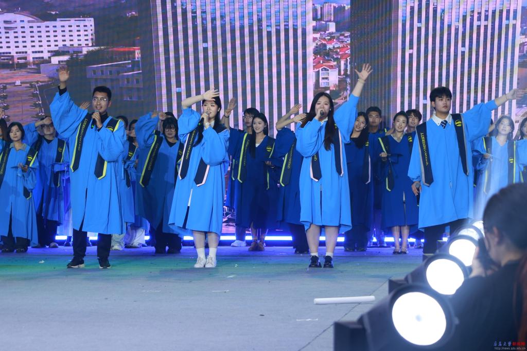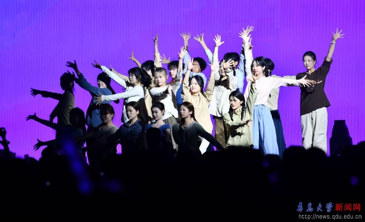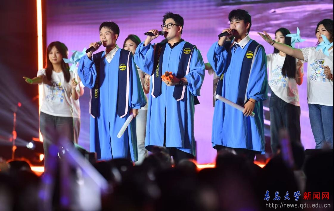 晚会融合了乐团、电声乐队、情景演唱、舞蹈、相声、朗诵等多种精彩表演形式,并与精心设计的服装走秀相得益彰,打造了一场立体而多元的现场演出。在回忆往昔的时光里,深情的歌声传递了毕业生们难舍的离别之情;在把握当下的青春年华中,坚定的姿态展现了青大青年奋勇向前的青春风采;在展望未来的旅途中,激昂的旋律描绘了新时代青大青年奋发向前的壮志豪情。