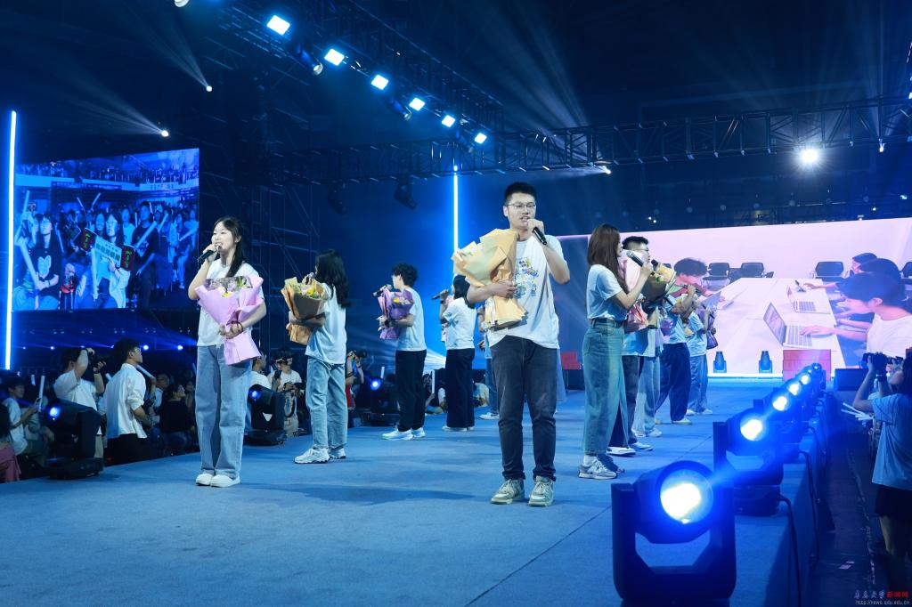 新闻网讯 6月12日晚,“奔赴下一场山海”bevictor伟德官网2025毕业歌会在伟德官网浮山校区体育馆举行。校党委书记胡金焱,校党委常委、副校长何燕,校党委常委、宣传部部长吴世珍出席晚会。