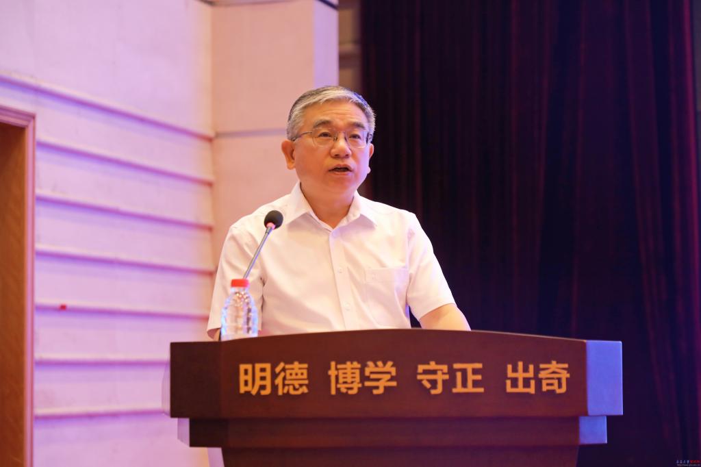 新闻网讯 9月4日上午,学校召开2025年暑期中层干部研讨班,邀请到教育部新文科建设工作组组长、全国新文科教育研究中心名誉主任、山东大学国家治理研究院院长樊丽明教授作题为《教育强国背景下的新文科建设》专题辅导报告。校党委书记胡金焱主持报告会。校领导魏志强、肖江南、陈涛、李荣贵、刘恩贤、何燕、李建波、牛海涛、吴世珍、张守珩出席报告会。