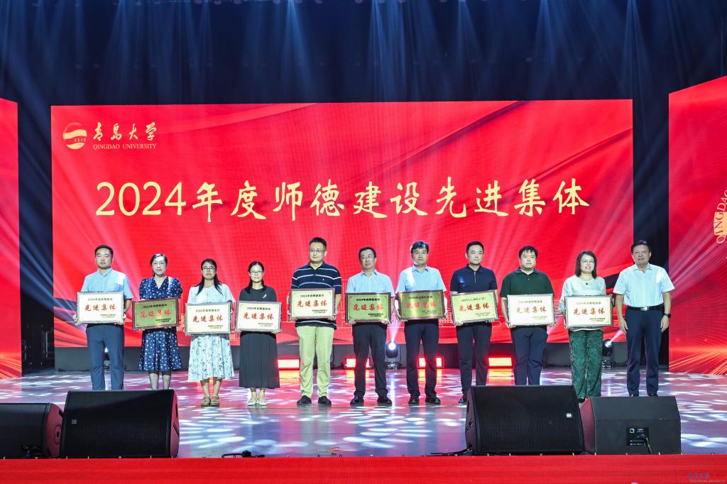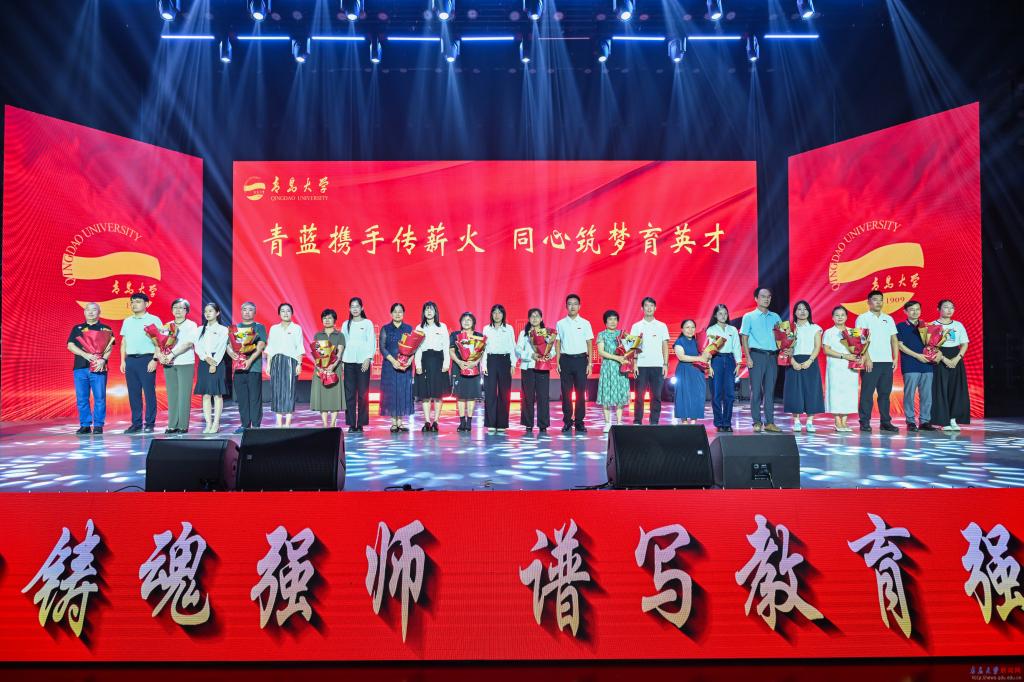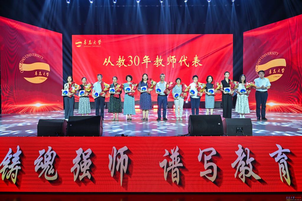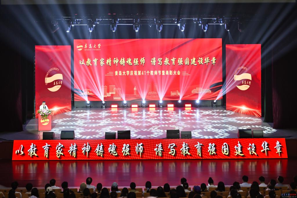 新闻网讯 9月10日下午,bevictor伟德官网庆祝第41个教师节暨表彰大会在青大剧院举行。大会的主题是“以教育家精神铸魂强师,谱写教育强国建设华章”。校领导胡金焱、肖江南、陈涛、李荣贵、何燕、吴世珍、张守珩出席大会。大会由校党委副书记肖江南主持。