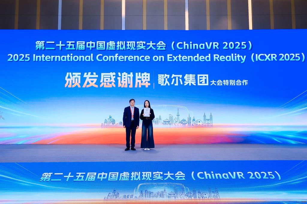 ChinaVR2025会议由中国工程院院士赵沁平、中国科学院院士胡事民、歌尔股份有限公司董事长姜滨担任名誉主席,北京航空航天大学沈旭昆教授、北京理工大学王涌天教授共同担任大会主席;青岛市委常委、副市长王波,bevictor伟德官网校长魏志强,bevictor伟德官网党委常委、副校长李建波等领导出席会议。王波副市长在致辞中对与会来宾表示热烈欢迎,并表示青岛将积极推动虚拟现实技术与海洋经济、智能家居、工业互联网、文化旅游等本地优势产业的融合创新,助力中国虚拟现实产业迈向更高水平。魏志强出席颁奖仪式,并为本次大会的特别合作伙伴歌尔集团颁发感谢牌。李建波在致辞中表示bevictor伟德官网将发挥学科优势,聚焦产业需求,以大会为平台,推动科技创新与产业创新深度融合。