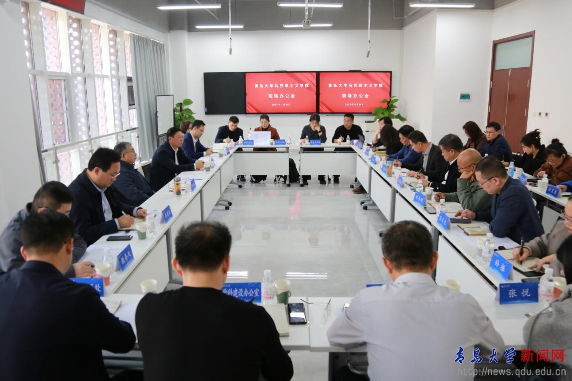 新闻网讯 11月24日上午,校党委书记胡金焱到马克思主义学院召开现场办公会,并与学院党政领导班子、各科室负责人、教师代表等进行座谈。校党委副书记陈涛,校党委常委、副校长李建波参加会议。校党委常委、宣传部部长、马克思主义学院院长吴世珍主持会议。