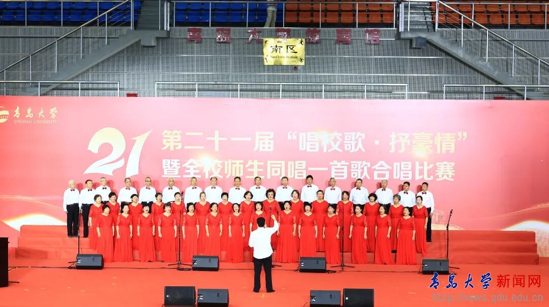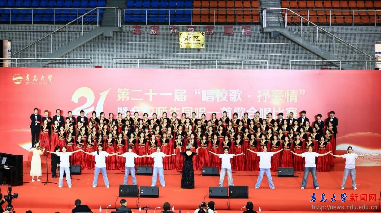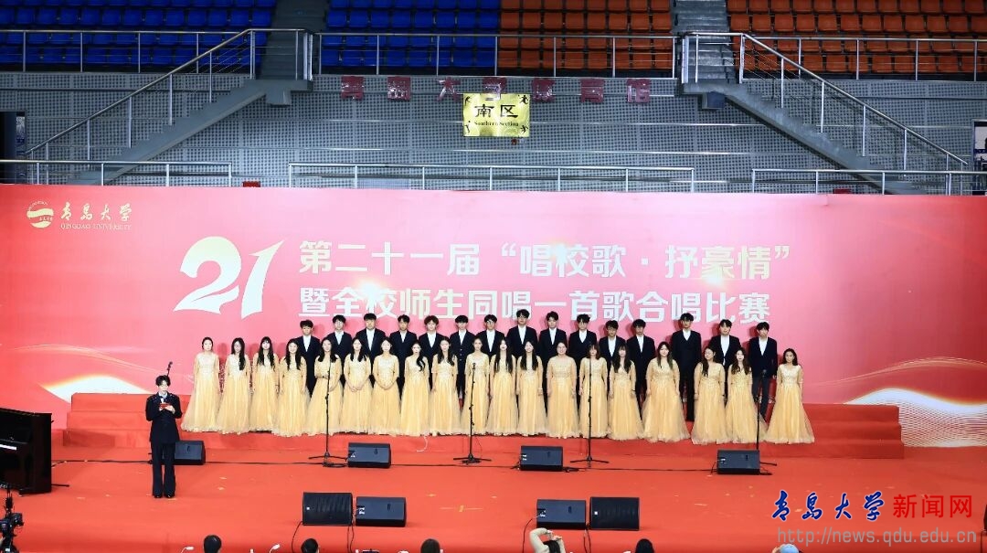 比赛共分为四个部分,第一部分为暖场表演环节,比赛正式启幕前,几位校园歌手率先登场,一首首镌刻童年记忆的经典动画主题曲在现场唱响,不仅唤起了学生们的情感共鸣,也迅速点燃了现场氛围;第二部分为各代表队演唱环节,23支代表队展示出各自不同的风采和特色,引得全场师生阵阵喝彩;第三部分为全体师生联唱环节,《青大之歌》与《仰望星空》的曲调在体育馆里回荡,师生们和着旋律跟唱起来,每一句哼唱都藏着心意,每一段旋律都裹着温情。