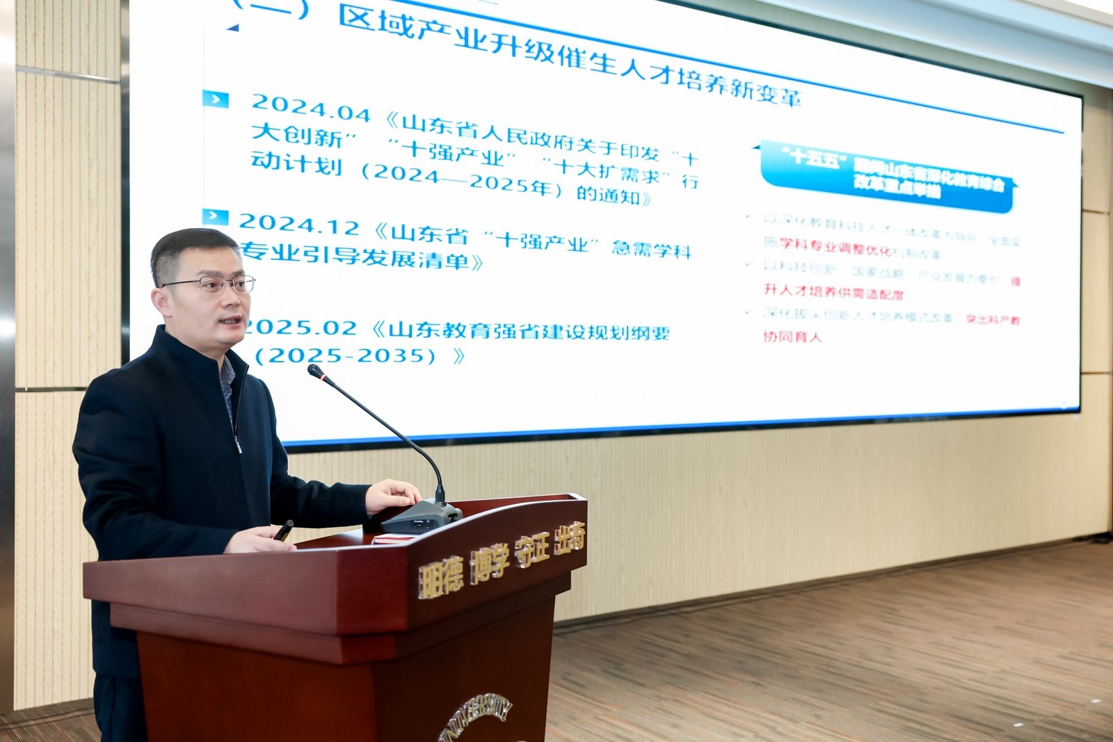 管恩文用“双向奔赴”生动诠释了鲁渝两地在教育、科技、人才领域的深度协作。他从山东雄厚的产业基础、深入的产教融合、优厚的政策环境三个维度,全面展现了山东作为“尊重人才、渴望人才、成就人才”热土的独特优势。他表示,此次活动既是对山东教育改革发展成果的全面展示,更是对鲁渝深化协作的战略擘画。