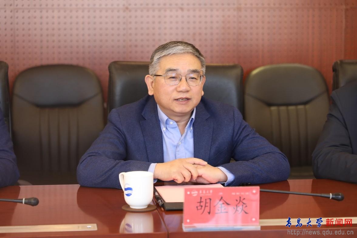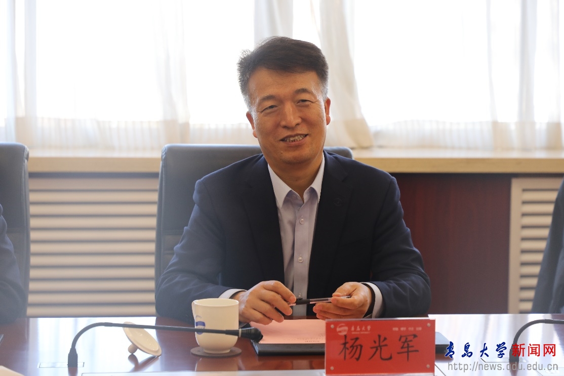 胡金焱代表学校对杨光军一行的到来表示欢迎,并重点介绍了学校在人才队伍建设、优势特色学科建设、科技成果转化等方面的实践经验与显著成绩。胡金焱指出,学校坚持人才强校核心战略,依托优越的城市发展平台、多学科交叉融合的办学优势以及基础教育和医疗资源配套资源,着力构建“一体两翼”的人才发展支撑体系。近年来,高层次人才自主培育成效显著,人才集聚成效彰显。胡金焱表示,希望以此次交流为契机,借助山东人才发展集团的平台优势与专业力量,进一步拓展学校的人才工作视野,创新人才服务机制,携手为山东省和青岛市的高质量发展提供更加强劲的人才智力支撑。