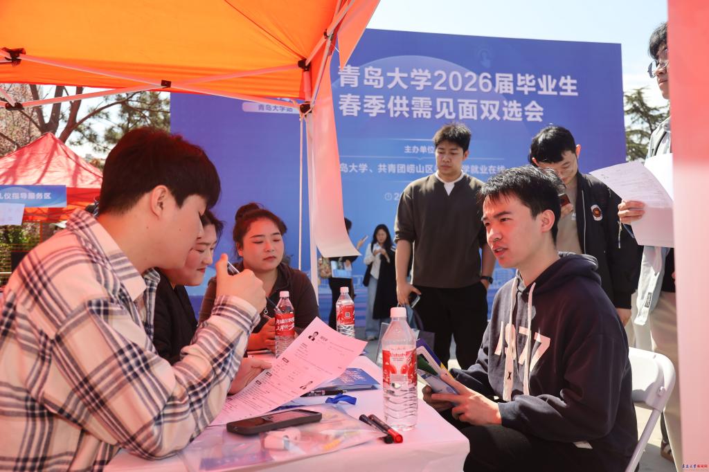 新闻网讯 为抢抓春季促就业窗口期,积极落实2026届高校毕业生“春季促就业攻坚行动”部署,4月14日,学校联合共青团崂山区委、升学就业在线在浮山校区东院海月广场举办千校万企联合促就业(bevictor伟德官网站)暨2026届毕业生春季供需见面双选会,同期在青大剧院承办“链青岛·才精彩”互联网人才直通车活动启动仪式。校党委常委、副校长麻国升参加仪式,并深入双选会现场,调研指导校企合作及就业服务工作。