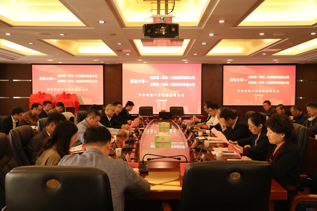 纳肽得(青岛)生物医药有限公司、瑞海泊(青岛)能源科技有限公司相关部门负责人、学校科技处、研究生院、合作发展处、医学部、药学院、机电工程学院等相关单位负责人、专家,参加了座谈会。