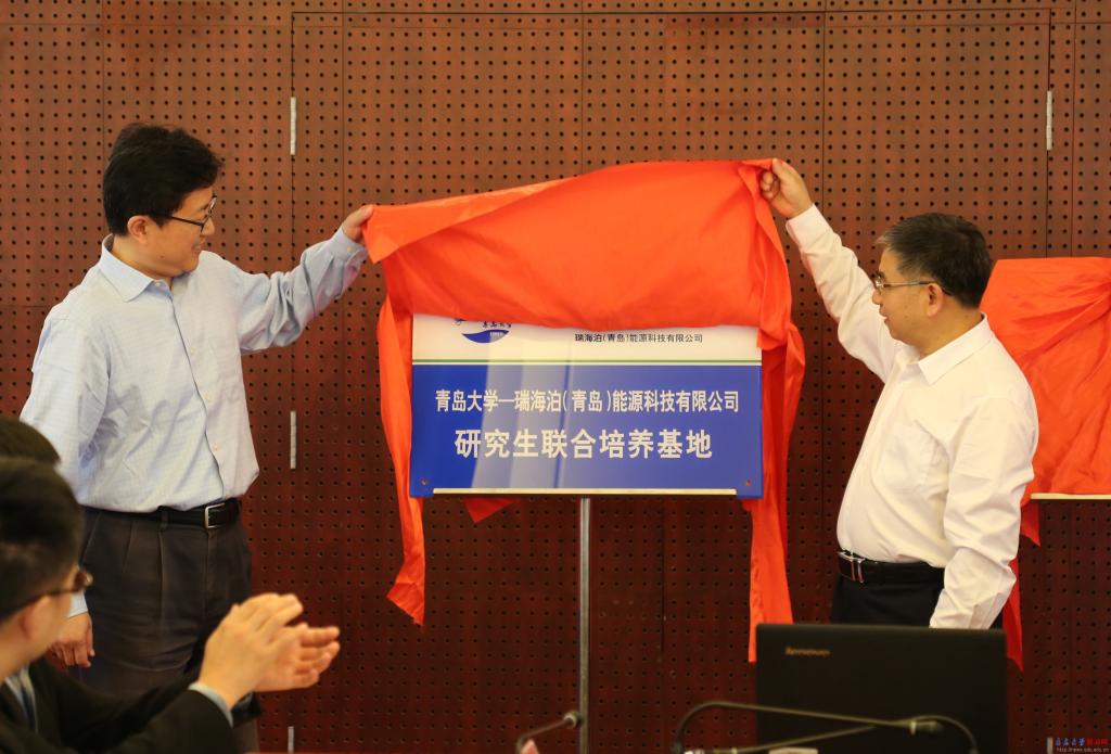 胡金焱、陈璞为bevictor伟德官网-纳肽得(青岛)生物医药有限公司研究生联合培养基地、bevictor伟德官网-瑞海泊(青岛)能源科技有限公司研究生联合培养基地揭牌。