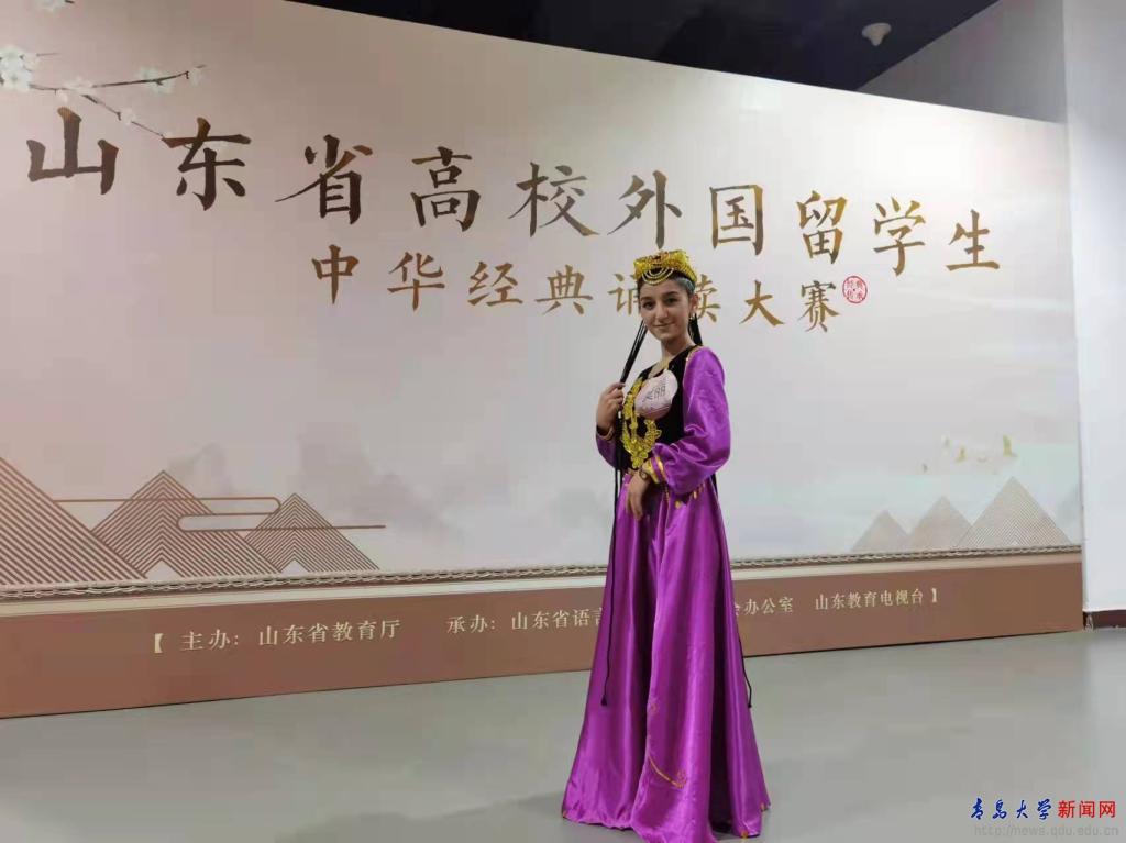 新闻网讯 为给外国留学生搭建展示中华文化才艺和中华经典诵读水平的舞台,促进中国语言和中华文化的国际传播,由山东省教育厅主办,山东省语言文字工作委员会办公室、山东教育电视台承办的2021年山东省高校外国留学生中华经典诵读大赛决赛于12月3日在济南举办,来自省内11所高校的25名选手在山东教育电视台参加了决赛角逐,伟德官网来自乌兹别克斯坦的外国留学生莫丽在比赛中表现突出,获得一等奖。