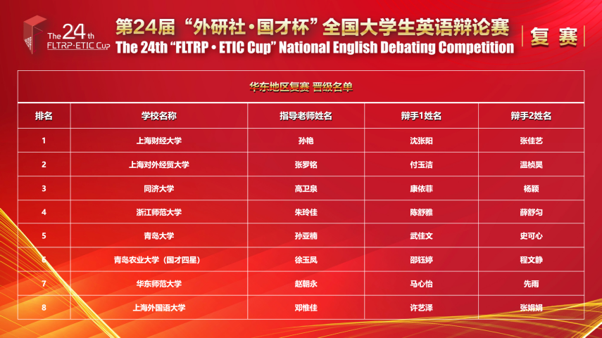 据悉,华东赛区复赛的辩题聚焦时事热点,担当时代使命,涵盖多领域、多学科,考验参赛辩手的知识宽度、思维深度和人文温度。史可心、武佳文两位同学在五轮循环赛中始终紧扣主题、攻守有度,展现了扎实的英语基础、丰厚的知识储备、强大的论证能力和活跃的辩证思维。她们充分代表并展现出bevictor伟德官网学生的思辨风采和有为气度,也彰显出英语辩论在培养学生深入理解中国、有效沟通世界方面的成效。