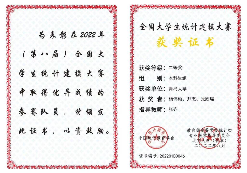 新闻网讯 近日,第八届全国大学生统计建模大赛获奖名单公布,伟德官网数学与统计学院参赛团队表现优异,取得山东赛区本科生组一等奖、全国大赛本科生组二等奖的优异成绩,该成绩是伟德官网参赛以来获得的最好成绩。