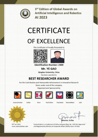该研究是在新冠疫情背景下针对疫苗供应链管理协同方面展开,论文探讨了人工智能技术和区块链技术在疫苗供应链运营中的适用性和有效性。在经过专家提名和多轮评审后,国际学术组织ScienceFather决定授予高野2023年“最佳研究者奖” (3rd Edition of Global Awards on Artificial Intelligence and Robotics AI 2023,Best Researcher Award,ScienceFather)。“Global Artificial Intelligence”是为鼓励和表彰世界各地的研究人员和研究组织在其专业领域的重大贡献和成就而设立的,所有国籍的研究人员和学者都有资格获得“ScienceFather Artificial Intelligence Awards”。对被提名人的评判标准是:过去的成就、卓越的研究和杰出的学术成就(https://artificial-intelligence-conferences.sciencefather.com/awards/)。2020-2022年,我国获得此项奖项的学者分别来自浙江大学、上海交通大学、四川大学、吉林大学、华中农业大学等高校。